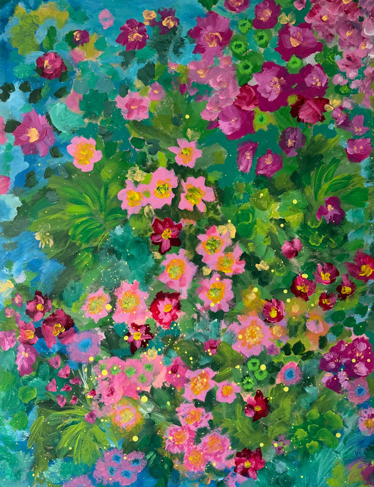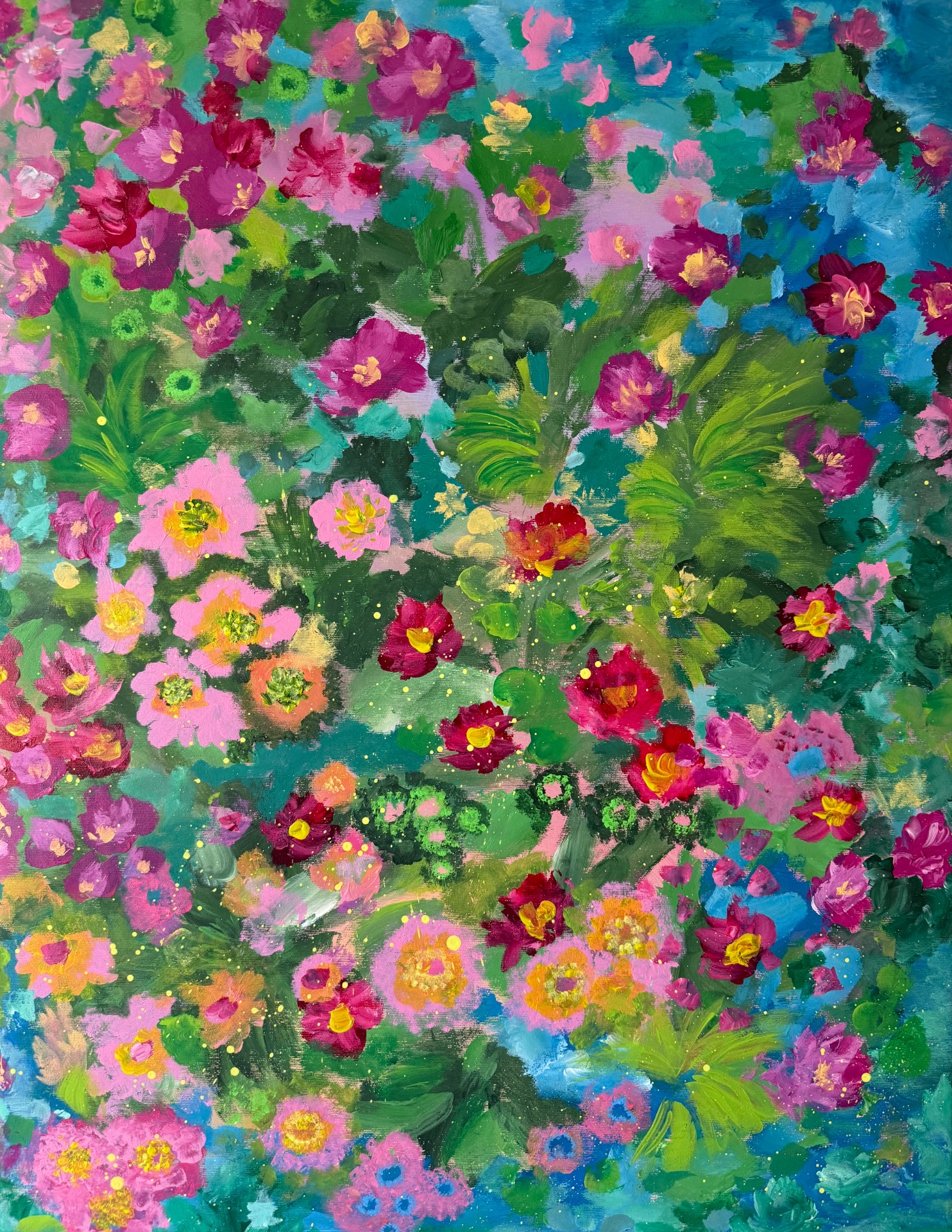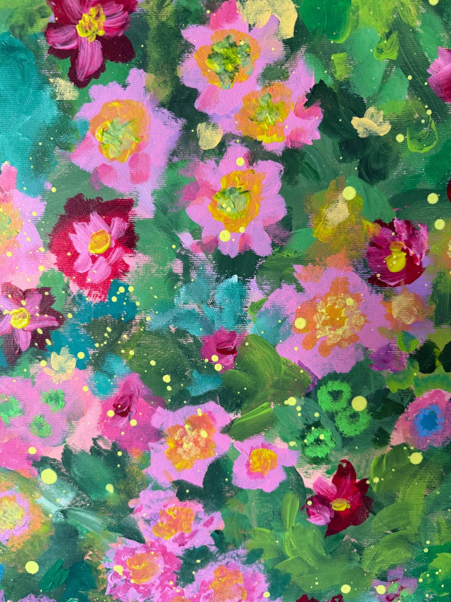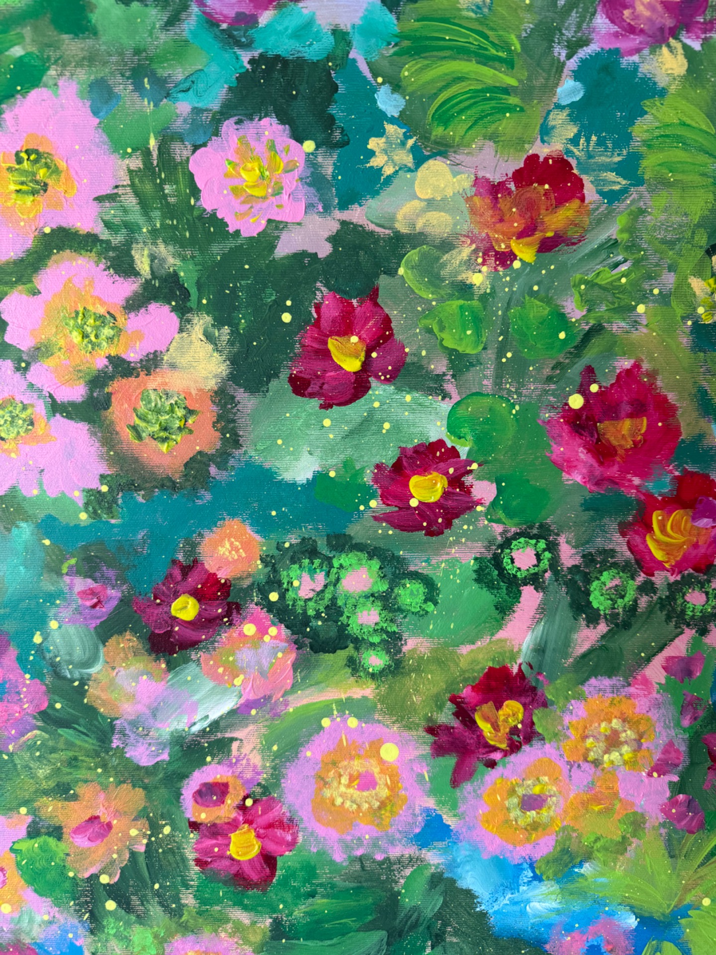 Diptych zložený z dvoch plátien, každé s rozmermi 60 × 80 cm. Spoločne tvoria harmonický celok naplnený farbami a energiou. Kompozícia predstavuje živú zmes kvetinových foriem, ktoré sa navzájom dopĺňajú a prelínajú. Vhodný do moderného aj klasického interiéru.